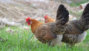 Buckeye chickens are dual-purpose, heritage chickens known for their luscious meat and their wintertime production of medium-sized, brown eggs. They are active foragers and a calm-natured chicken breed, making them ideal for backyard flocks and pasture-poultry applications. Buckeye chickens come in large-fowl and bantam sizes.