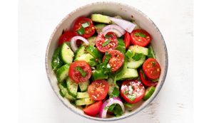 This tomato, cucumber and red onion salad is ridiculously simple, makes use of summer harvests and tastes amazing.
