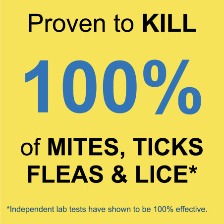 - PROVEN TO WORK. Our formula of natural oils is proven to kill on contact, repel and treat 95% - 100% of mites, lice, fleas, and tick. It is effective against all life cycles of bugs, including eggs, larvae, and adult.