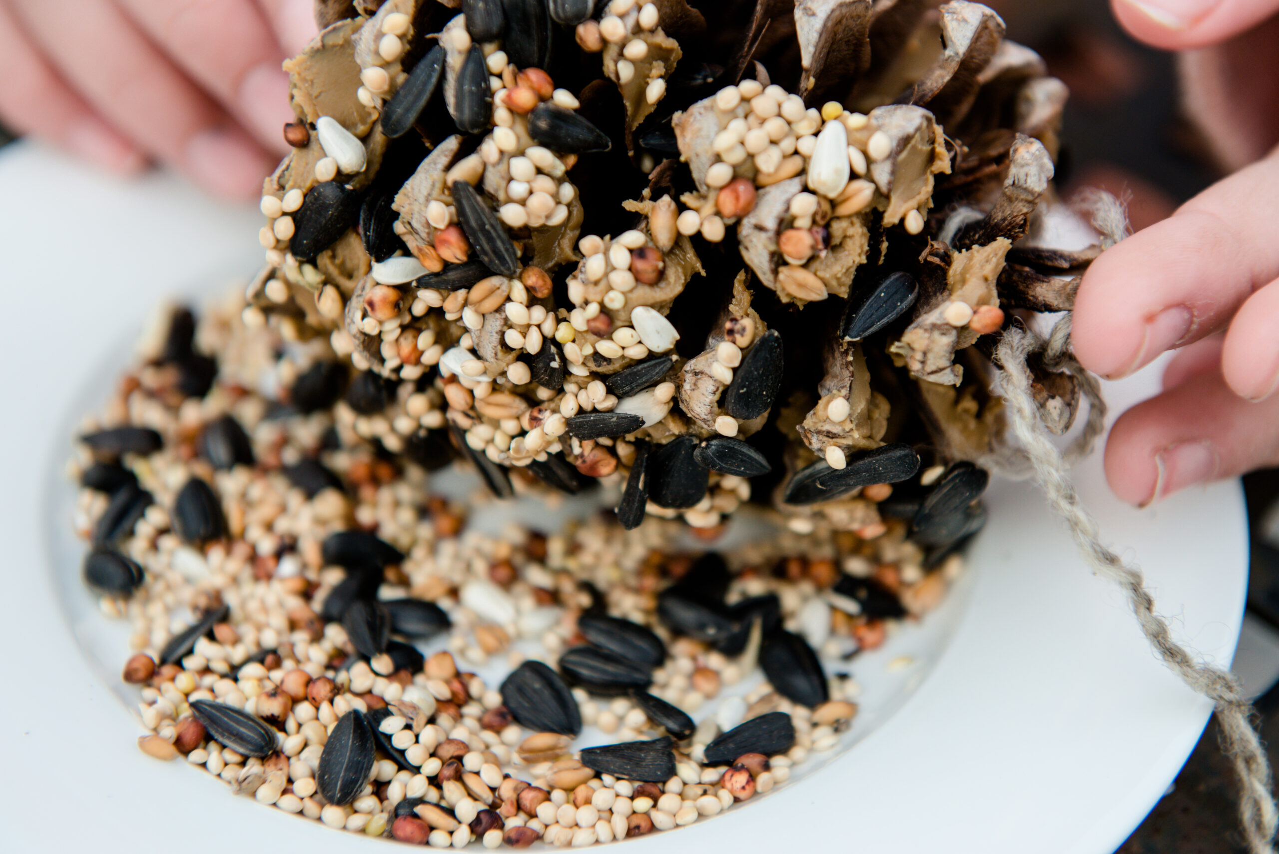 Be sure to take the pine cones down at dusk so that they do not attract nocturnal predators.
